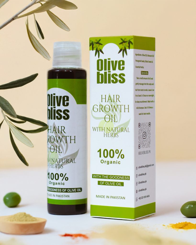 Get ready to experience the power of nature with Olive Bliss — your new go-to for organic hair nourishment. Our premium hair growth oil is made with 100% natural ingredients, free from harsh chemicals, and designed to restore strength, shine, and vitality to every strand.